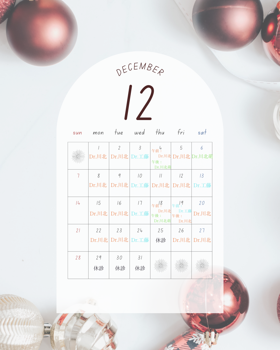 2025年12月12日(金)【変更のお知らせ】12月のドクターズスケジュール -