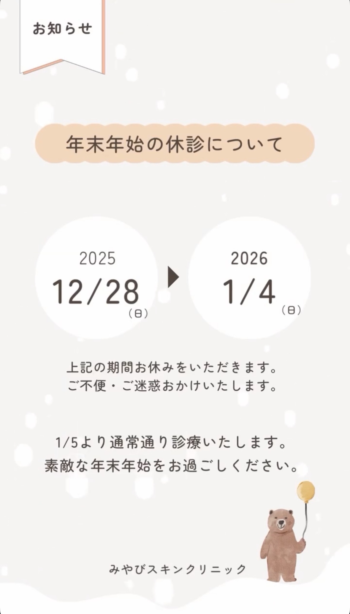 2025年12月2日(火)年末年始の休診のお知らせ -