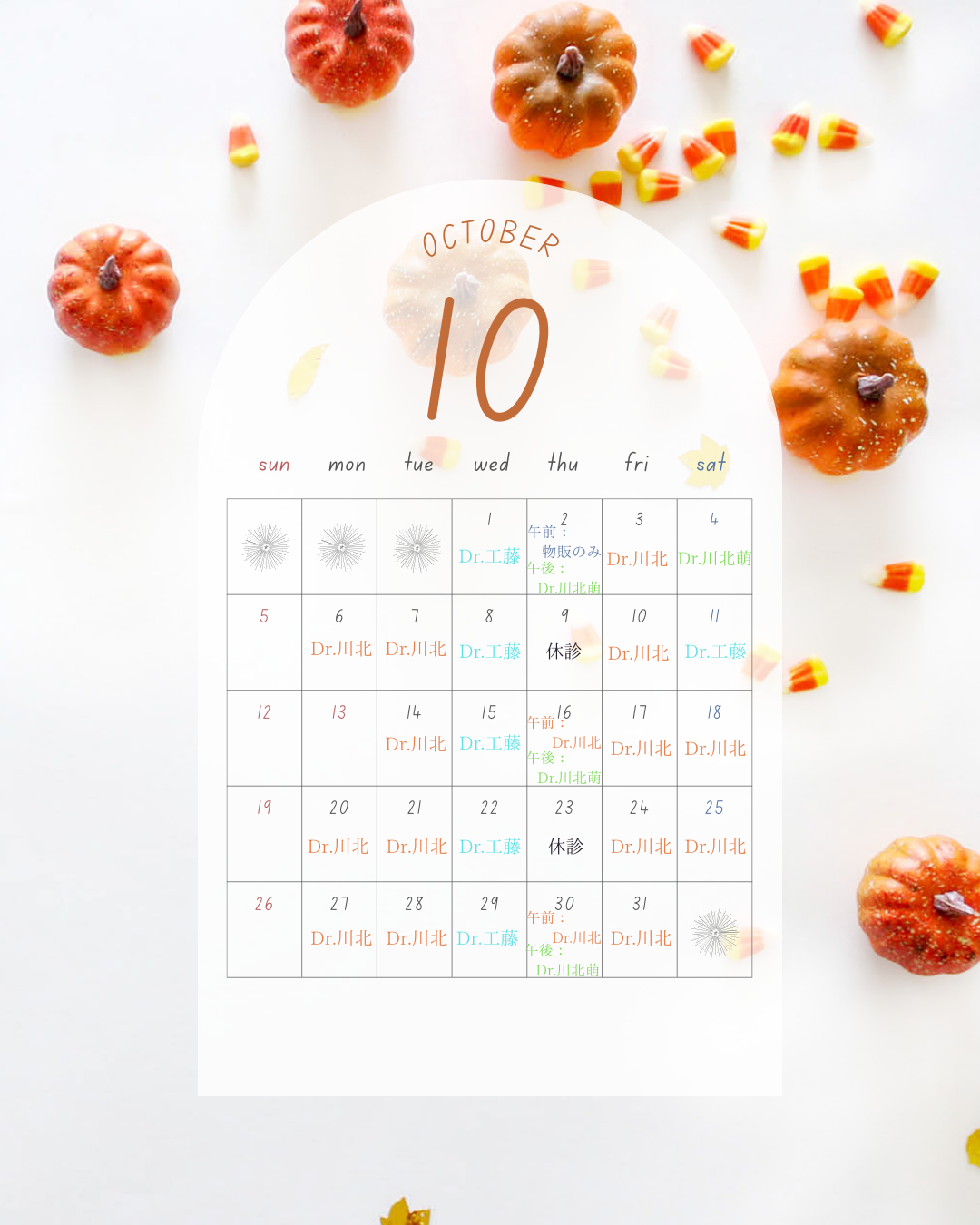| 10:00〜13:00 | ● | ● | ● | 休診 | ● | ● | 休診 |